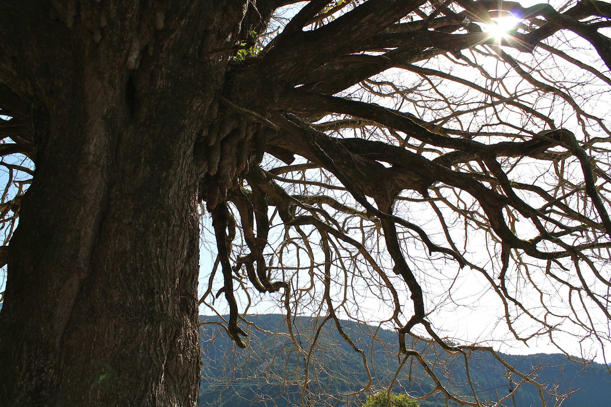 福定(ふくさだ)という集落の、宝泉寺境内で枯れたり芽吹いたりを繰り返すこと400年。